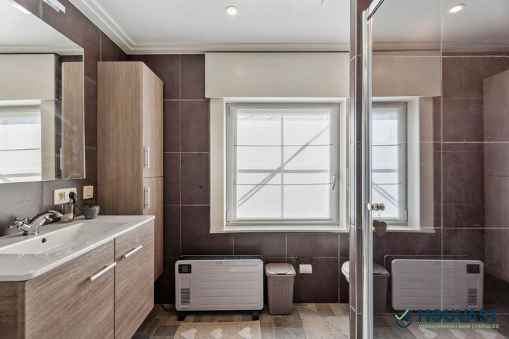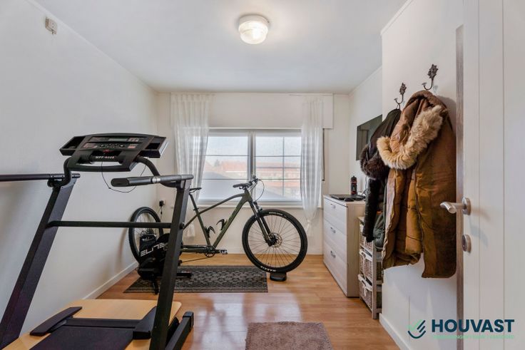 Op de gelijkvloers hebben we de inkomhal, leefruimte, eetruimte, keuken, extra ruimte, wasruimte en toilet.