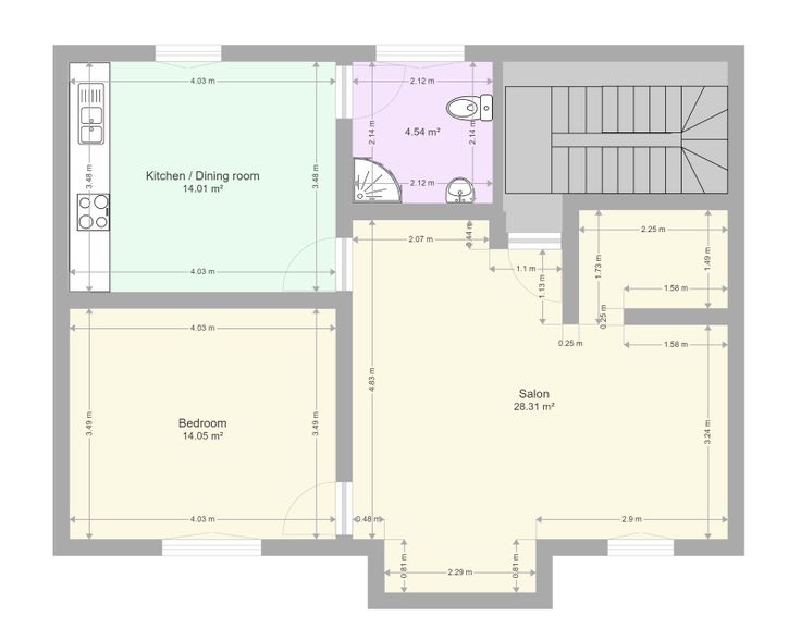 L'appartement se trouve au 3ème étage (sans ascenseur) et se compose d'un grand living (+/-28m2), d'une chambre (14m2), d'une cuisine équipée (14m2) et d'une salle de bain (+/- 5m2).