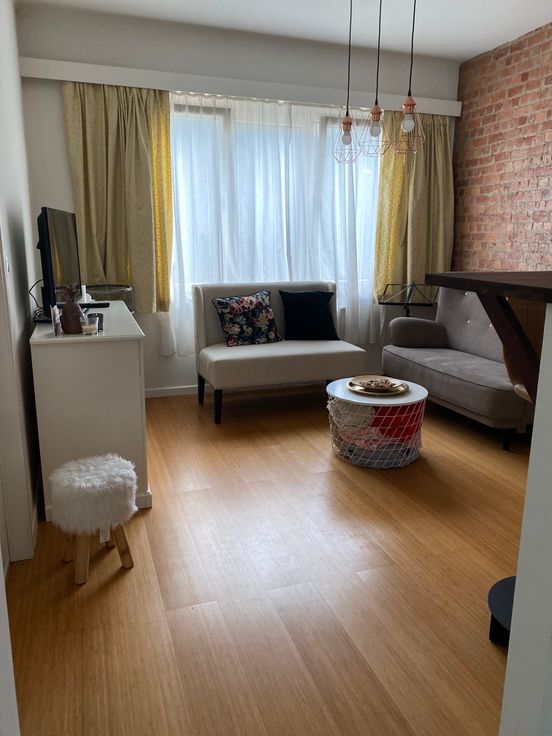 ANDERLECHT - In de directe omgeving van metrostation BIZET en het Parc des Étangs is dit mooie, lichte, gestoffeerde appartement van 50m2 geschikt voor één persoon of een koppel. Het is gelegen op de 1ste verdieping (van 3) van een klein gebouw met 7 appartementen in een rustige straat. Het is als volgt samengesteld: inkomhal, woonkamer, halfopen en half-geïnstalleerde keuken (oven, koelkast, vriezer, kookplaten), ruime slaapkamer (met grote kledingkast), badkamer (ligbad, toilet en ruimte voor wasmachine), klein afgesloten balkon en een kelder.