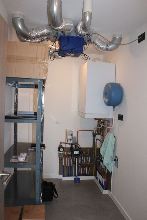 Naast de leefruimte bevindt zich de bergruimte en wasplaats met het ventilatiesysteem en de omvormer van de zonnepanelen (volledig gescheiden van het andere appartement).