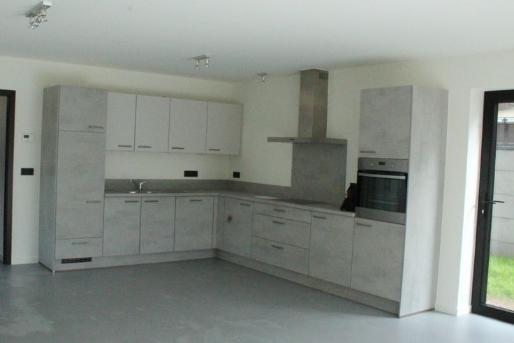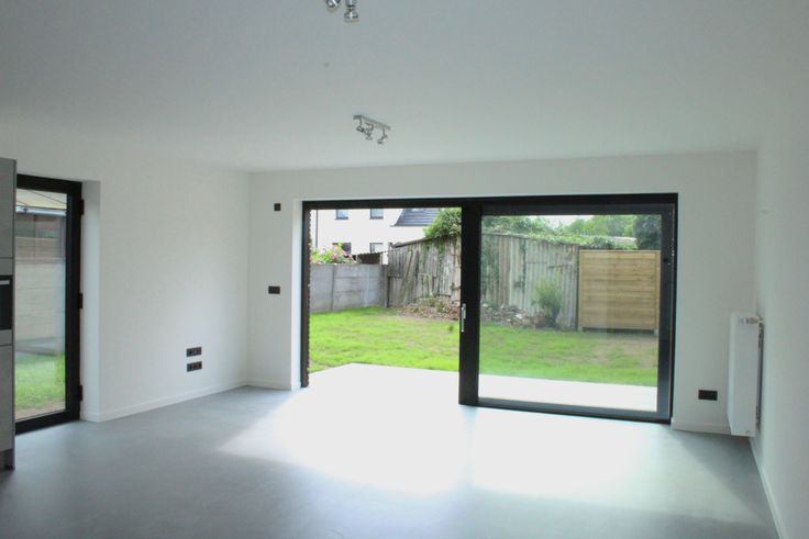 De volledig ingerichte keuken sluit aan op de lichtrijke leefruimte. Een groot schuifraam geeft uit op het terras.