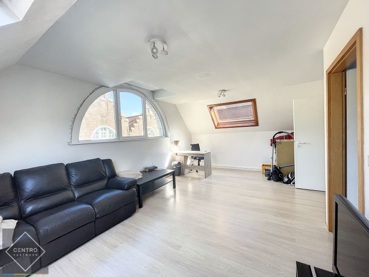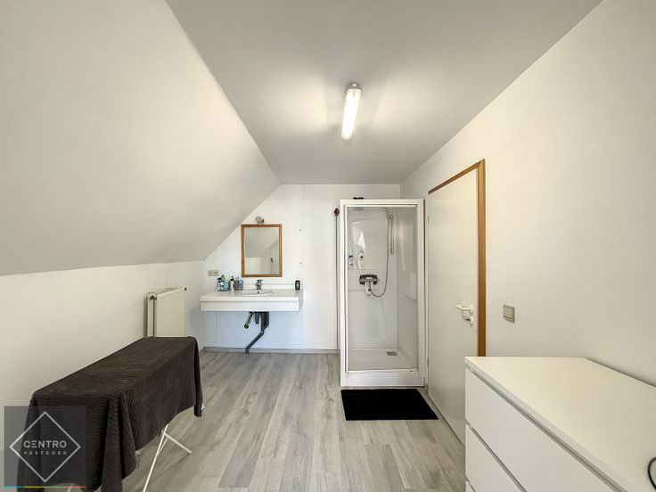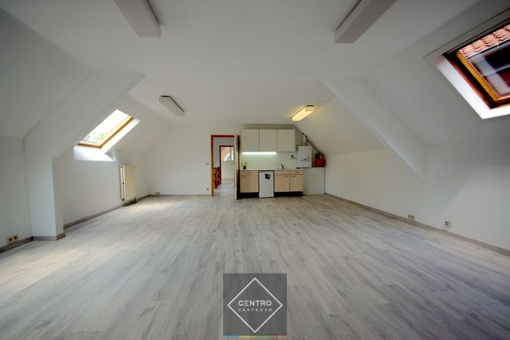 AFWERKING: bevloering in laminaat, dubbele beglazing, aluminium schrijnwerk, dakramen (hout), TL-verlichting (opbouw).