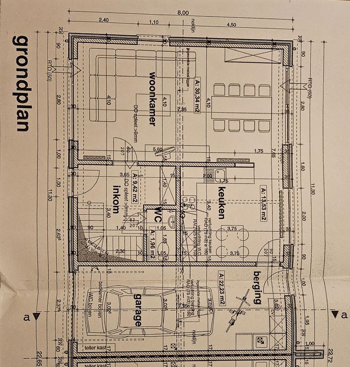De indeling bestaat uit een inkomhal met apart toilet, een zeer ruime woonkamer + open ingerichte keuken met alle kwalitatieve toestellen. Aansluitend aan de keuken is de ingebouwde garage met een extra plaats voor wasmachine en droogkast. Oprit voor een extra auto en een publieke parkeerplaats voor de deur.