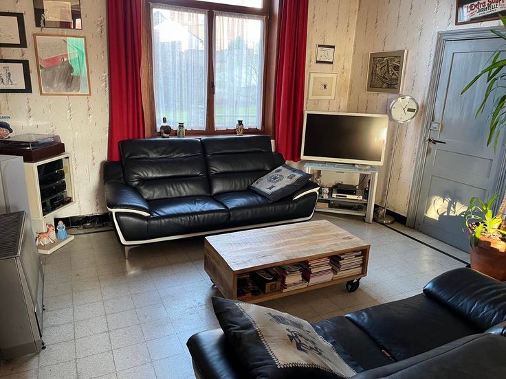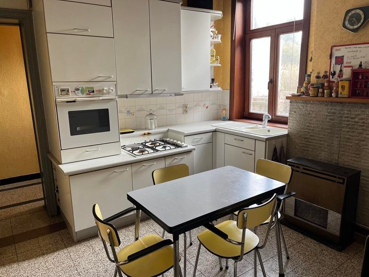 À VENDRE de particulier à particulier maison de caractère à réhabiliter, sise au centre du village de Leval-Trahegnies, Rue Salvador Allende, 137, sur une superficie de 4a50ca - RC : 394 €. Elle comprend, au RDC : couloir central traversant, avec, d’un côté, salle à manger et salon séparées par un escalier apparent et, de l’autre côté, bureau avec porte d’entrée séparée en façade (pouvant convenir pour profession libérale), cuisine, sas et petite salle de bains (avec WC, douche et lave-main). Au premier étage : en façade, couloir avec deux chambres et, à l’arrière, une chambre, une salle de bains (avec baignoire-douche, WC, lavabo double), ainsi qu’un grand studio aménagé traversant avec chambre en mezzanine, WC et coin cuisine. Cave et vaste grenier aménageable. À l’arrière, garage ouvert accessible par la rue latérale, atelier, remise, cour et pelouse, le tout prolongé par un grand jardin clôturé. Chauffage au gaz de ville, double vitrage partout, PEB F. Commerces, grande surface, écoles, gare et arrêt de bus à proximité. Idéalement situé à 55km de Bruxelles et de Namur, 22km de Mons et 18km de Charleroi. Visites uniquement sur rendez-vous au 0496 747 626, le jeudi de 17 à 19h et le samedi de 10 à 12h. Agences s’abstenir.