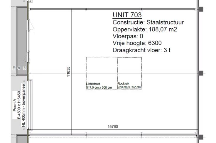 Deze opslagruimte van 188 m² beschikt over de volgende specificaties: