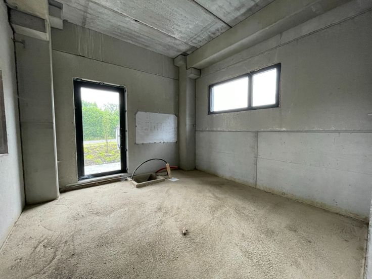 Gelijkvloers casco kantoor met inkomhal, ideaal voor de inrichting van twee aparte ruimtes.