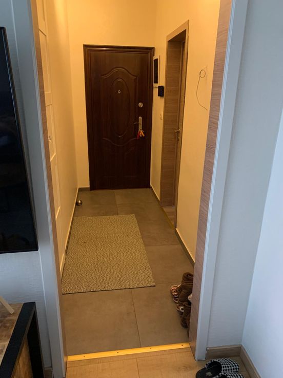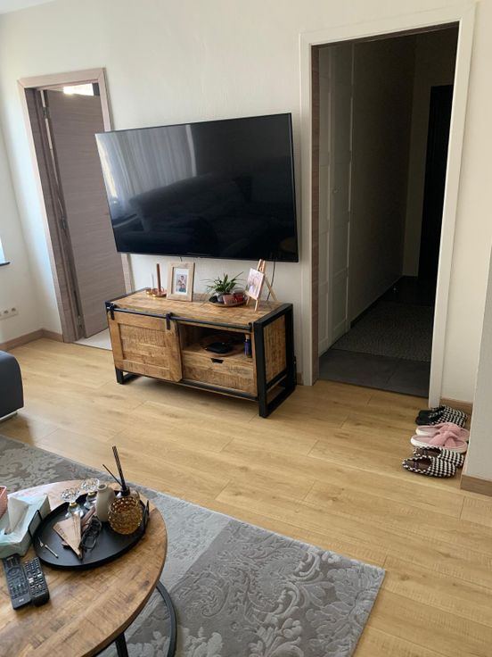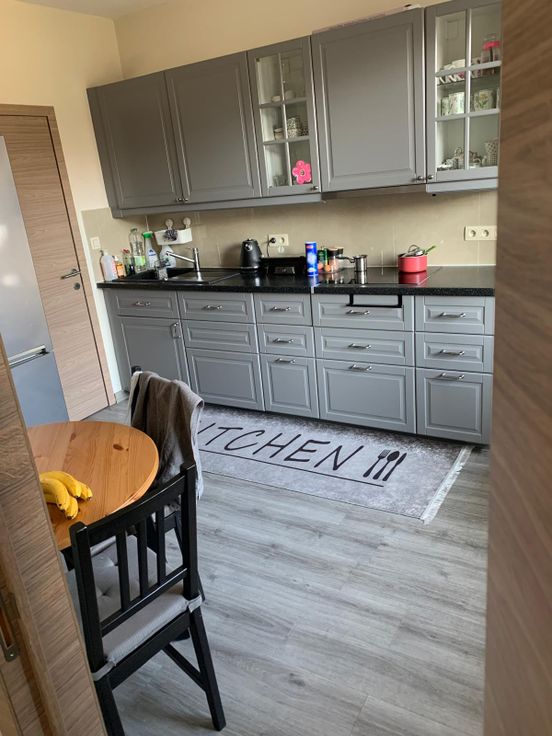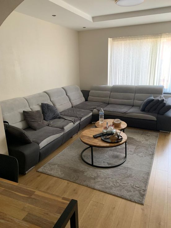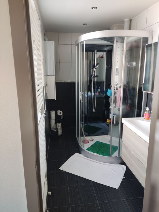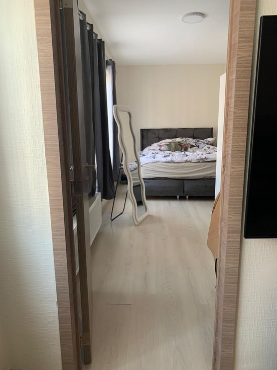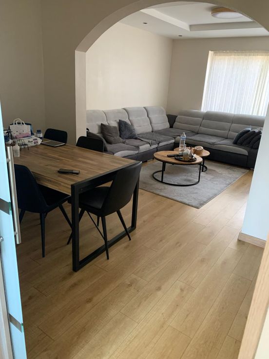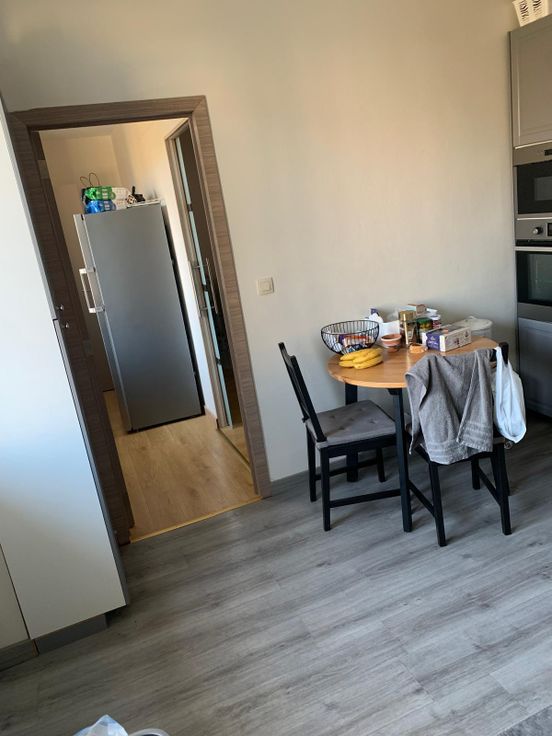 Espace de vie avec un hall , 2 chambres à coucher, une salle de bain (douche +wc), un grand salon et salle à manger ainsi qu'une cuisine équipée.