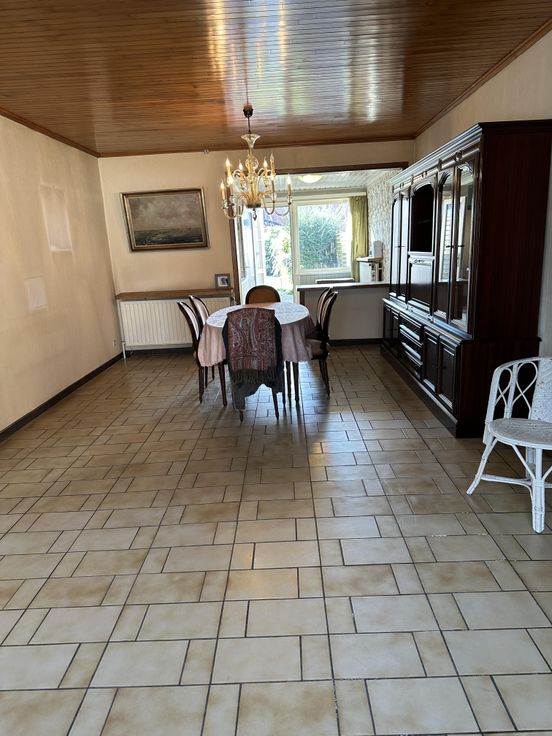 TE KOOP te Zelzate : Kerkstraat 91 ( goede locatie : dicht bij de invalswegen, scholen,winkels en openbaar vervoer ) Hoekwoning ( halfopen bebouwing ) met 3 slaapkamers, groot terras ( eerste verdiep aan tuinkant ) en zonnige tuin ( 115 m² ) met zijdeur + afzonderlijke vergunde garage aan einde tuin. Indeling : ruime kelder, gelijkvloers : inkomhal, open keuken in ruime leefruimte ( met houtvuur ),toegang van keuken/eetruimte naar de tuin, badkamer ( ligbad, douche, dubbele lavabo en wc ), berging ( centrale verwarming -installatie + aansluiting was-en droogmachine ) Eerste verdieping : nachthal, afzonderlijke wc, 3 slaapkamers waarvan één met wastafel en toegang tot terras. Ruime zolder. Ramen ( alu + pvc ) grotendeels dubbel glas en roll