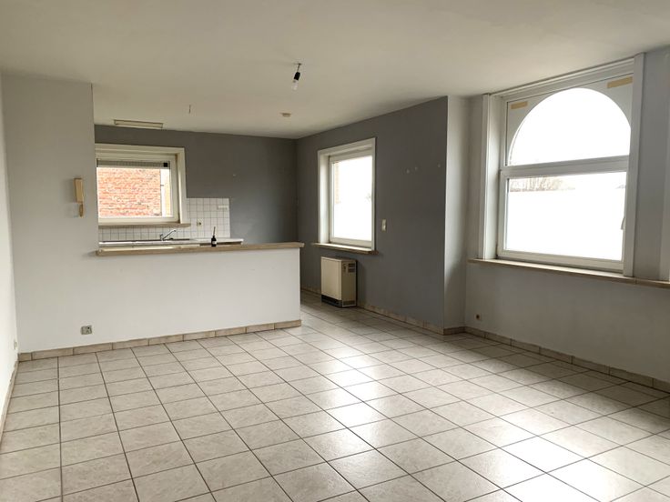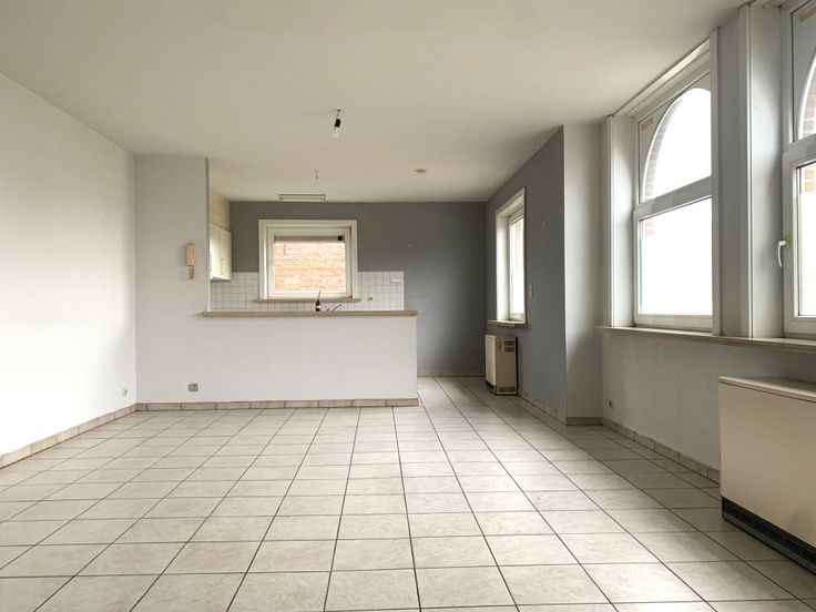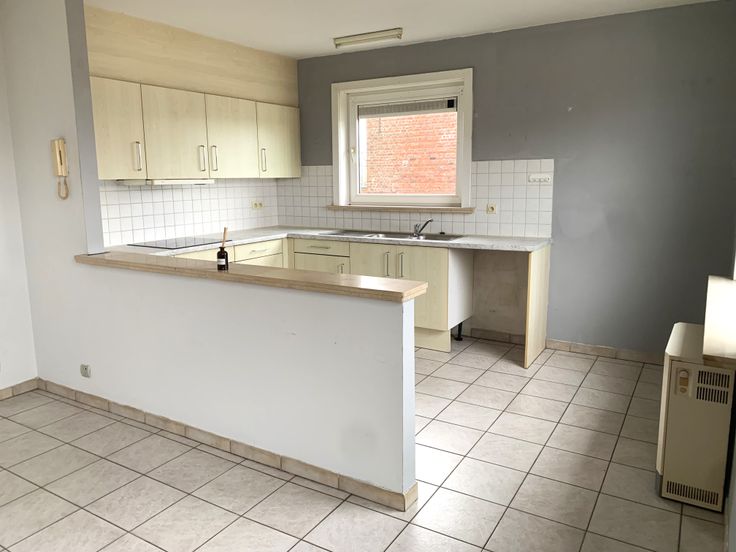 Het appartement gelegen op de 1ste verdieping bestaande uit een inkom, ruime lichtrijke woonkamer met open keuken, badkamer, 2 slaapkamers, berging en een apart toilet.