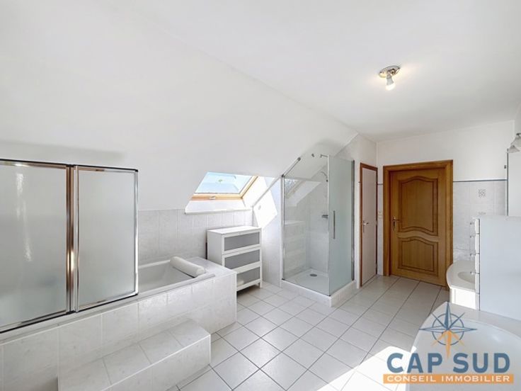 Une salle de bain comprenant bain et douche, un WC séparé ainsi qu'une buanderie complètent cet étage fonctionnel.