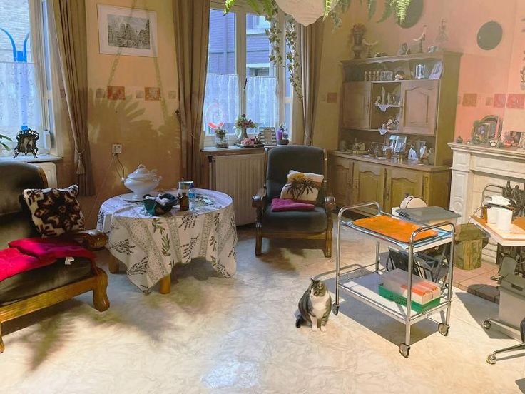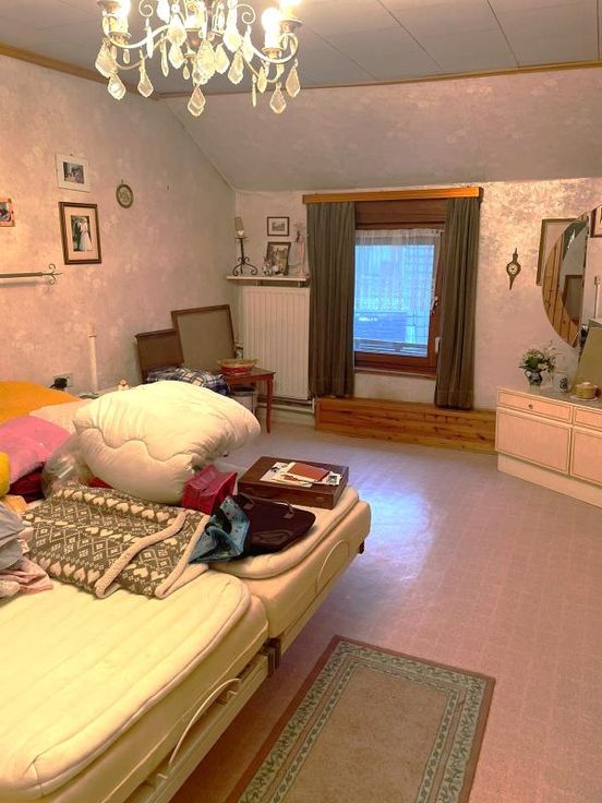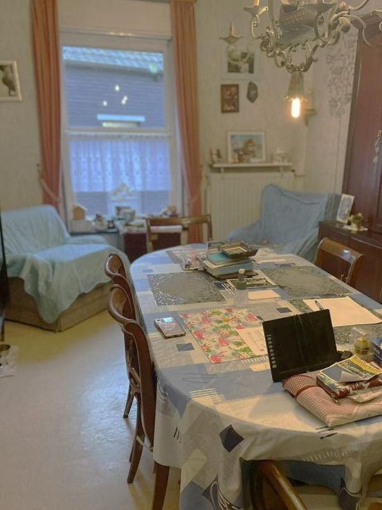 Reçu offre de 191.000€ Rez-de-chaussée : Hall d'entrée - Salon - Salle à manger - Cuisine non équipée - Arrière-cuisine Demi-étage : Une chambre Etage : Deux chambres - Salle de bain (Baignoire, Douche, Lavabo simple, WC) Remarque sur la disposition des lieux : Une grande chambre donnant accès à la salle de bain et à une plus petite chambre Sous les combles : Grenier aménageable Dépendances : Cour - Garage (avec WC) - Jardin Commodités : Egout - Eau de ville - Electricité - Téléphone - Télédistribution - Châssis en bois - Double vitrage - Porte en PVC - Volets à l'avant - Chauffage central - Chaudière au mazout - Citerne au mazout Parcelle non soumise à des obligations au regard de Décret Sol