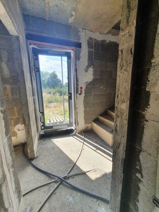 Gemäß den Richtlinien einer modernen und lichtdurchfluteten Architektur geplant, wurde der Rohbau in Wertarbeit hiesiger Firmen errichtet.