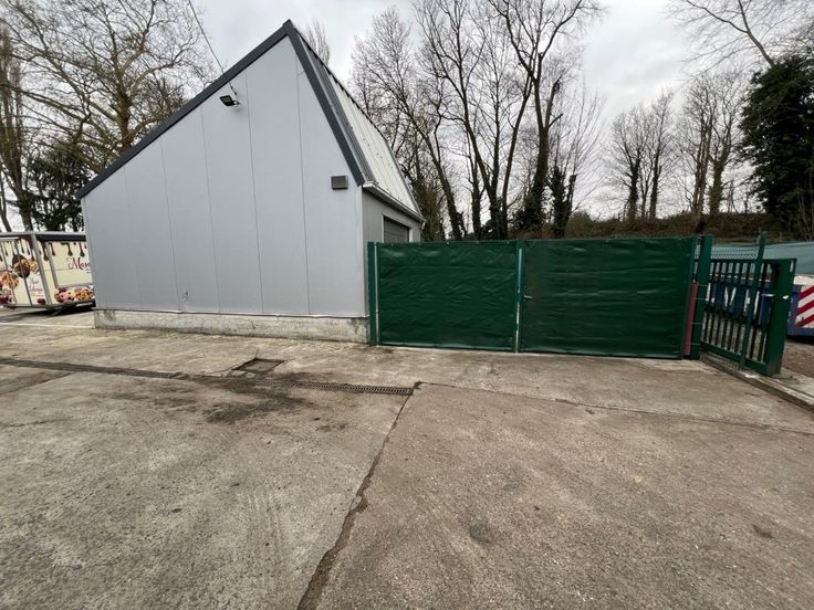 Magazijn (40m²) met buitenruimte in de Halvemaanstraat te Sint-Amandsberg. De buitenruimte van het magazijn is volledig omheind en afgesloten met een dubbele poort. Het magazijn zelf is afgesloten door een elektrische poort. Het magazijn heeft ook nog een extra niveau dat te bereiken is met een trap maar er is ook een groot luik voorzien.