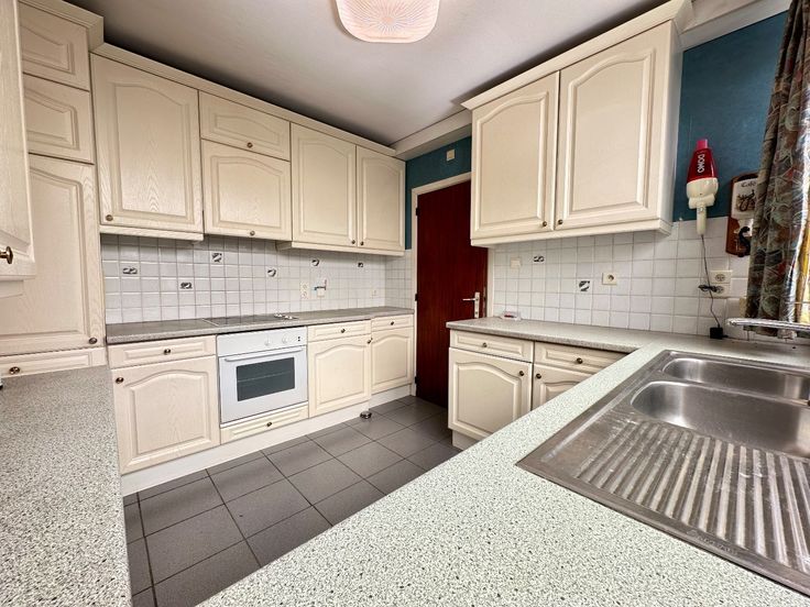 Deze lichtrijke bel-etagewoning in Tongeren, gebouwd in 1965, bevindt zich in een rustige omgeving met een prachtig uitzicht op de chocoladefabriek. Daarnaast ligt het vlak naast het indrukwekkende kasteel Rosmeulen. De woning biedt volop ruimte voor wie op zoek is naar meerdere kamers en extra leefruimte. Met vier slaapkamers, een ruime woonkamer, een ingebouwde keuken, een badkamer en veel opbergruimte, is het huis ideaal voor een groot gezin of een koppel.