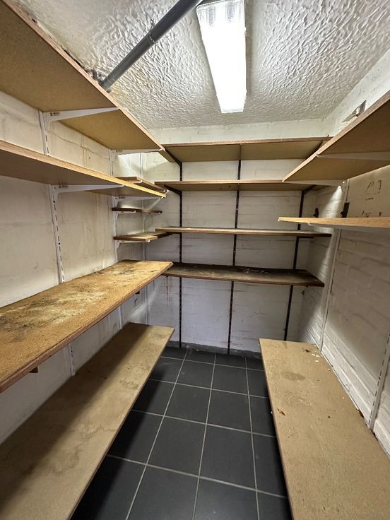 gelijkvloers: inkomhal, 2 garages, wasplaats, koele ruimte, werkhuis, toilet