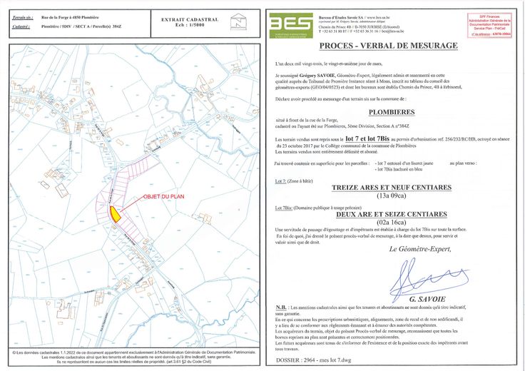 Lot 7 pour maison 4 façades - zone de construction de +/- 190 m² ( 12,5 x 15 )