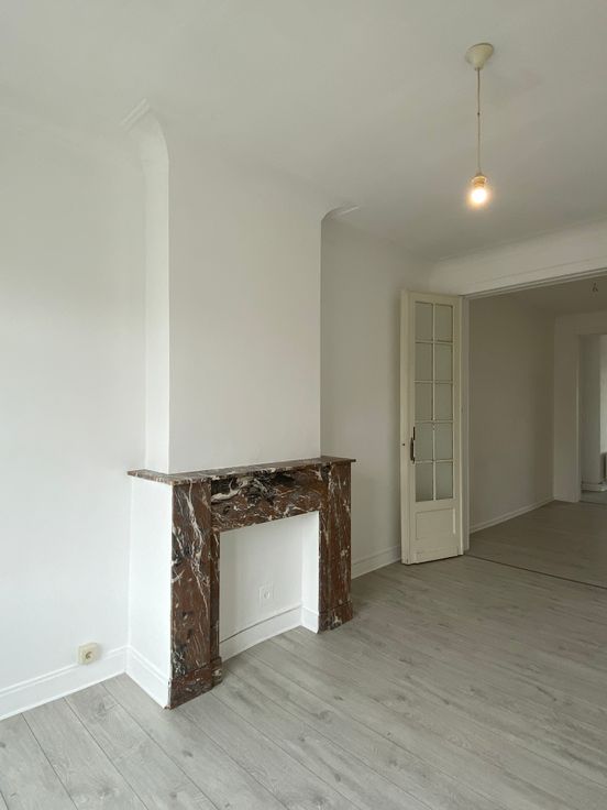 Appartement de 66 m2 habitable au troisième étage (sans ascenseur). Il est composé comme suit: 3 pièces en enfilades avec nouvelle peinture. Cuisine super équipée (four + hotte + taque avec emplacement pour machine à laver et frigo) ainsi qu’une cabine de douche.