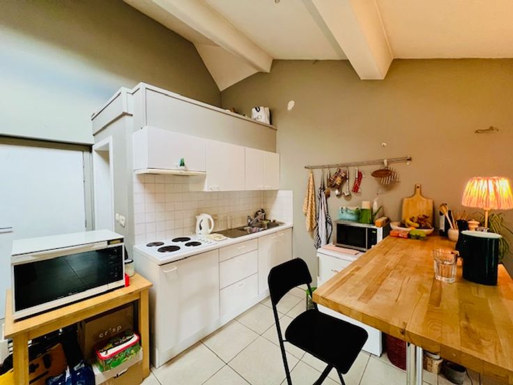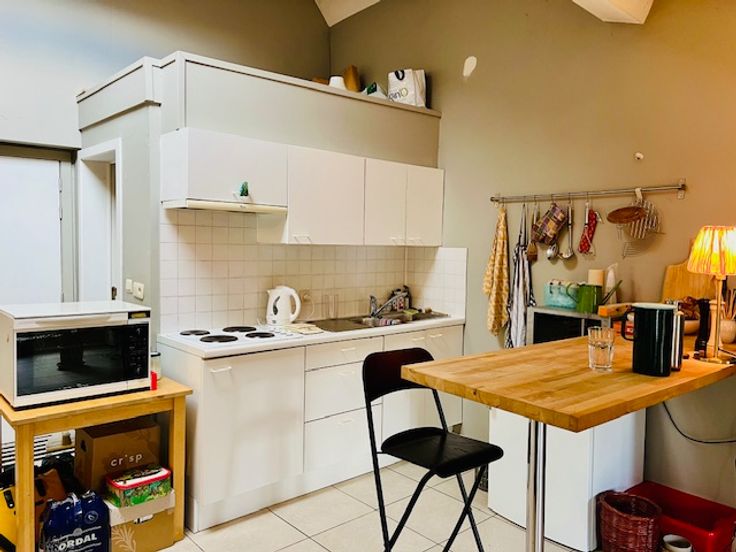Gelegen in het hart van de stad, bevindt zich op de tweede verdieping van een kleine residentie, dit gezellige appartement. Het appartement beschikt over een ruime woonkamer met een keukenblok, een badkamer met douche, lavabo en toilet, en een aansluiting voor een wasmachine. Direct naast de badkamer ligt de slaapkamer. In het aangrenzende gebouw, om de hoek, is er toegang tot een gemeenschappelijke fietsenberging. De gemeenschappelijke kosten zijn laag en bedragen € 25,00 per maand, bovenop de huurprijs. De kosten voor elektriciteit, gas en water zijn apart te betalen. Het energieprestatiecertificaat (EPC) bedraagt 210 kWh/m². Het appartement is beschikbaar vanaf 1 juni 2025. Houd er rekening mee dat er geen lift aanwezig is en dat studenten niet zijn toegestaan; domicilie is verplicht. Renovatieplicht: onbekend