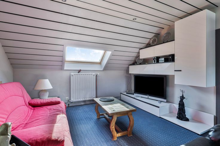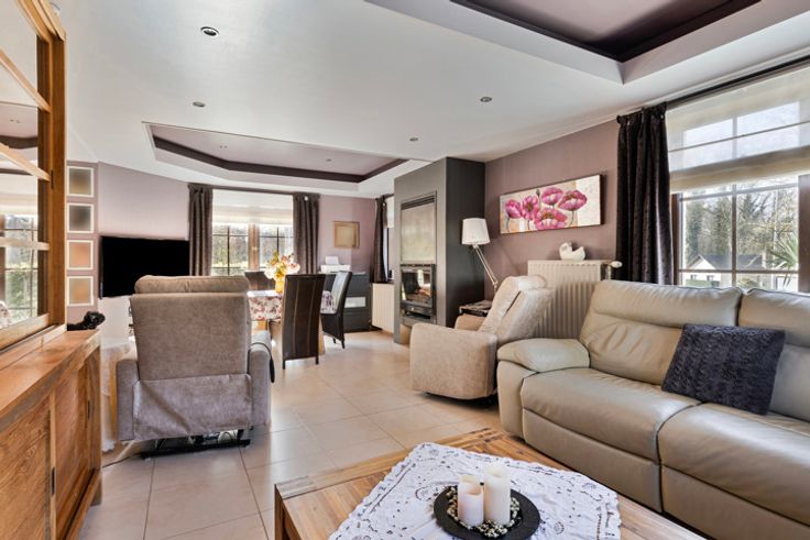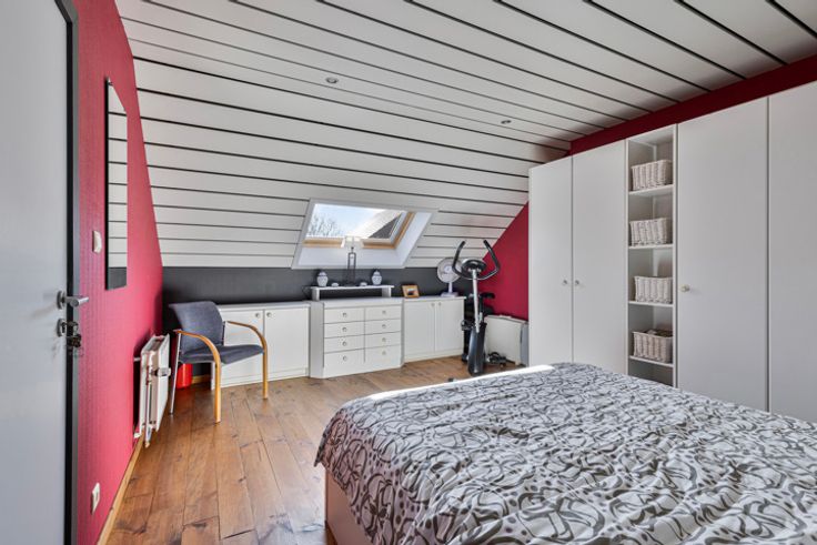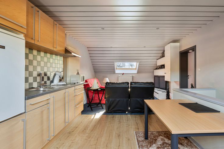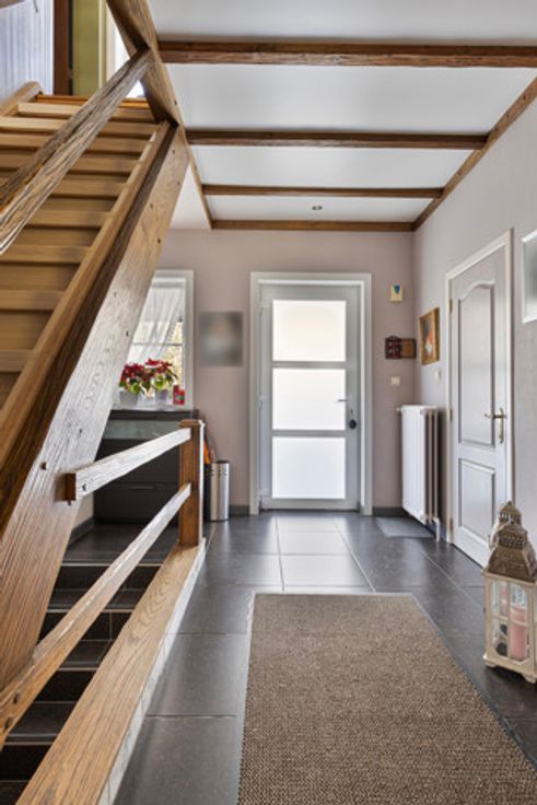 Gelegen op de Lotsesteenweg 26 in Beersel, biedt deze charmante driegevelwoning een unieke combinatie van karakter en modern wooncomfort. De woning, oorspronkelijk gebouwd in 1932, werd volledig gerenoveerd en is instapklaar. Dankzij de vernieuwde ramen, het vernieuwde dak en de moderne keukens en badkamers, voldoet deze woning aan alle hedendaagse woonwensen. Bij binnenkomst stap je in de inkomhal, waar zich een apart toilet en een badkamer met douche bevinden. Vanuit de hal loop je verder naar de ruime en lichtrijke woonkamer, die naadloos aansluit op de moderne keuken. De grote raampartijen zorgen hier voor een aangename lichtinval en een open, uitnodigende sfeer. Op de eerste verdieping bevindt zich een tweede, stijlvolle badkamer en een op maat gemaakte dressing. Daarnaast is er een ruime slaapkamer en een tweede kamer die momenteel als bureau is ingericht. Deze verdieping biedt voldoende ruimte en flexibiliteit om in te richten naar eigen wens en behoefte. De tweede verdieping is een volwaardige woonunit met een eigen keuken, een gezellige woonkamer, een ruime slaapkamer en een badkamer met douche en toilet. Dankzij deze indeling is de woning perfect geschikt als kangoeroewoning of als tweewoonst. Daarnaast is de woning volledig onderkelderd. In de kelder bevindt zich een aparte wasplaats, een ruime werkplaats en een inpandige garage met een automatische garagepoort. Verder is er een sauna aanwezig die momenteel niet in gebruik is, maar no