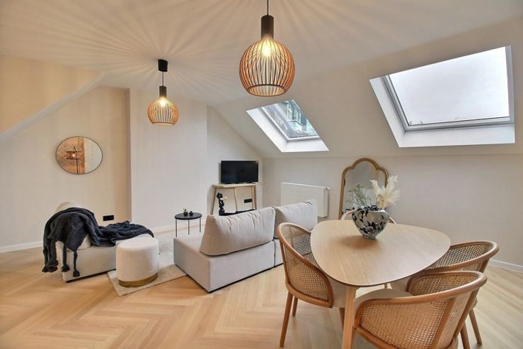 Gelegen aan de prestigieuze Avenue Molière, in een klein karaktervol gebouw dat volledig gerenoveerd is, biedt By the Way u dit prachtige duplexappartement aan van +/- 85 m² bewoonbare oppervlakte. Het appartement biedt moderne en hoogwaardige afwerkingen en betreft een eerste bewoning na renovatie. Op de 1e verdieping vindt u een inkomhal met vestiaire, een apart toilet, een lichte woonkamer van +/- 27,3 m² en een volledig uitgeruste open keuken van BULTHAUP. De 2e verdieping onder het dak heeft een comfortabele plafondhoogte en omvat een grote slaapkamer van +/- 19,3 m², een douchekamer met toilet en een berging.Tussen de verdiepingen in bevindt zich een privékelder/wasruimte en een fietsenstalling. Elektriciteit conform, EPC E+. Kleine mede-eigendom van 4 eenheden met lage gemeenschappelijke kosten (+/- 150 €/maand - syndic, gemeenschappelijke delen). Individuele meters voor water, elektriciteit en gas. Vloer in semi-massief hout (visgraat), videofonie, glasvezelinternet, ventilatiesysteem (VMC). Vervoer en winkels in de nabijheid. Info en bezoeken: neem contact op met Nadia +32 478 41 65 69 - nadia@bytheway.be
