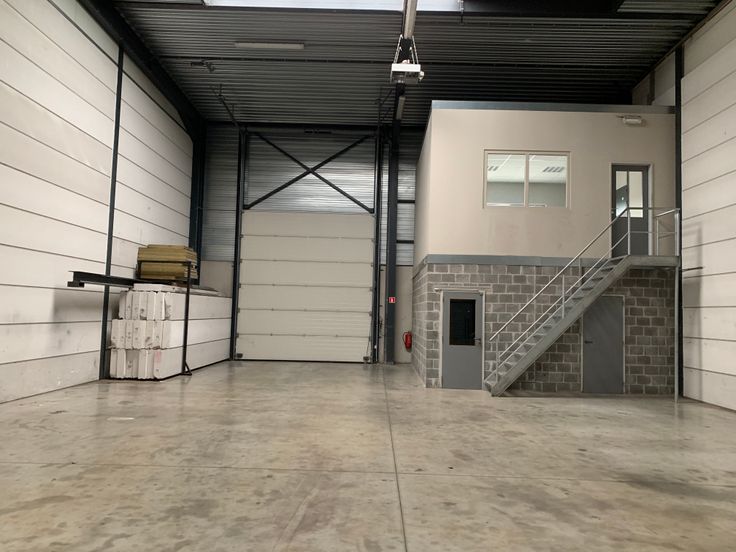 Bedrijfsgebouw met een oppervlakte van 325m² en een kantoorruimte / personeelsruimte op verdieping. Het gebouw is 8 meter hoog met een sectionaal poort van 4 x 6 meter hoog en aparte toegangsdeur. Technische ruimte met 2 toiletten, lavabo en douche. Mooi droog gebouw, gemakkelijke ingang voor vrachtwagens. Gelegen in KMO-zone klasse 2.