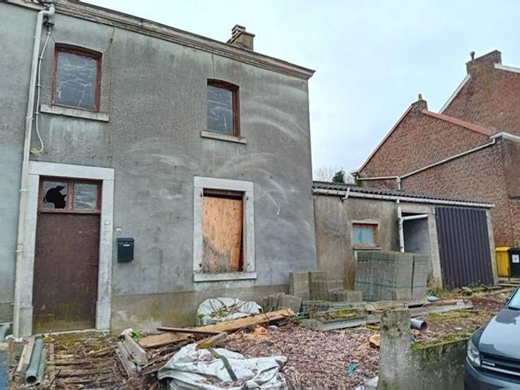 Une maison d'habitation trois façades avec annexe, et jardin, Ensemble à l’état de chantier en cours. Travaux importants à réaliser pour rendre le bien habitable, en ce compris le cas échéant l’obtention d’un permis d’urbanisme. Rue Burettes numéro 26, Superficie terrain de 3 a 80 ca. Libre au paiement du prix Situation rurale- agréable – proche de tous services a proximité de sortie autoroute Braives Fumal