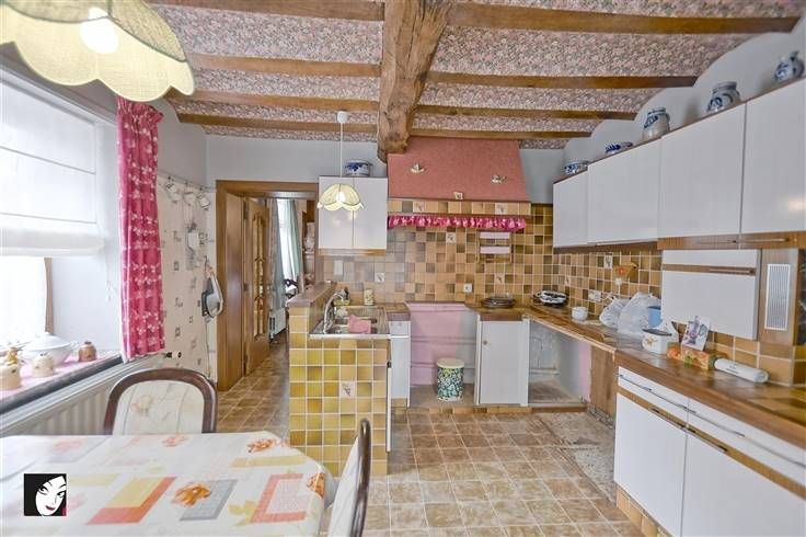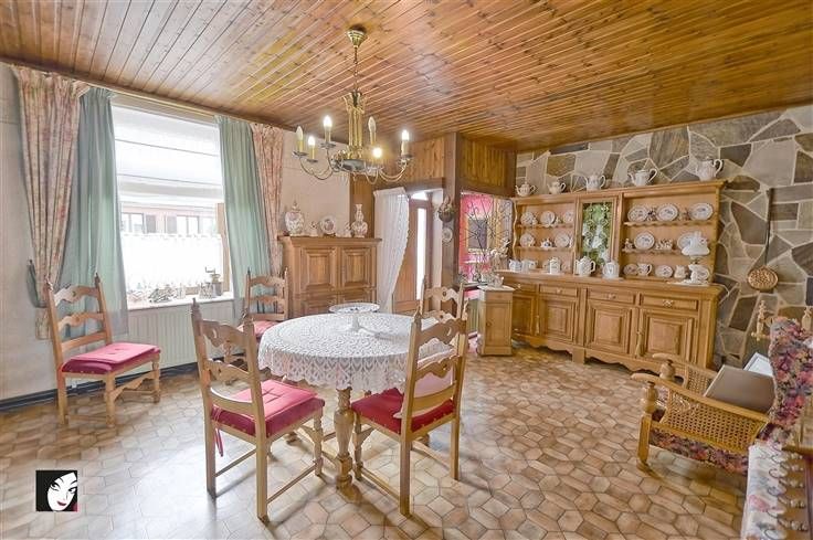 Sorry er is geen nederlandse vertaling beschikbaar. Idéalement située, sur les hauteurs du village, au calme et à la fois proche de toutes les commodités, maison 3 façades avec un très grand jardin dont une partie est à bâtir, jolie devanture, très grand garage pour 2 voitures avec fosse, parking et abri de jardin. Le tout sur +/- 7 ares avec une vue dégagée et un bois à proximité, l’endroit idéal pour vous y épanouir en famille ! Voici quelques lignes sur son agencement : hall d’entrée, agréable séjour avec cheminées fonctionnelles, WC indépendant, salle-de-bains fonctionnelle avec espace buanderie, cuisine semi-équipée avec coin repas et une véranda en 2 parties, A l’étage : grenier aménageable + 2 très grandes chambres qu’il est possible de scinder ainsi qu’un grenier supplémentaire au 2ème étage avec isolation au niveau du sol lui aussi aménageable. Infos utiles : maison 3 façades en briques peintes, très bonne toiture en tuiles en bon état général, isolation au niveau du sol, double-vitrage en bois + volets, chauffage central au mazout + gaz de ville dans la rue, cheminées fonctionnelles, électricité à revoir, éclairage extérieur, alarme, citerne d’eau de pluie + groupe hydrophore, raccordement aux égouts, différentes entrées, possibilité d’extension, tente solaire électrique. Maison offrant un beau potentiel et du caractère (façades, vousettes, …), quelques travaux sont à prévoir mais possibilité de les réaliser progressivement. Qu’attendez-vous ? Bien libre de suite.