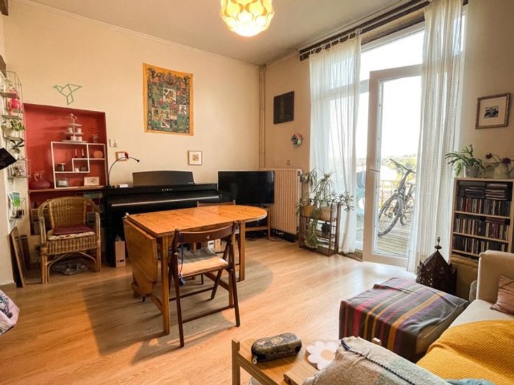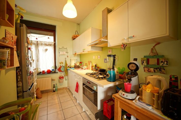 Trevi Rasquain vous propose à la location cette charmante maison située dans une rue calme et proche des commodités (gare, commerces, écoles...). Elle se dispose comme suit : Au RDC ; hall d'entrée, une pièce de vie donnant accès à une agréable terrasse avec store, une cuisine semi-équipée (cuisinière gaz, four électrique, hotte) et un WC séparé. Au 1er étage ; deux chambres et une salle de bains (baignoire, 1 évier, WC). Au 2ème étage : un bureau et un grenier de rangement. Au sous-sol, deux caves et accès au jardin. Aspects techniques : chauffage central au gaz de ville, châssis en DV bois et pvc, citerne d'eau de pluie de 1000L, PEB D (289 kWh/m².an). Disponible le 1er avril. 2 mois de garantie locative. Loyer : 725€/mois. Vous trouverez dans l'onglet "documents" le formulaire de candidature à compléter et à envoyer à l'adresse location@trevirasquain.be. Plus d'infos : 085.25.39.03
