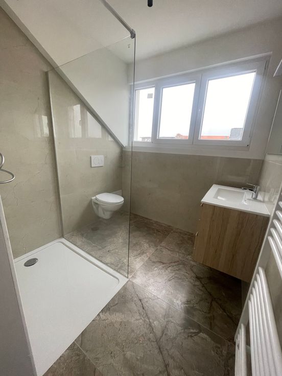 Appartement récemment rénové avec 2 chambers, cuisine ouverte avec espace salon/salle à manger, et une salle de douche. L'appartement vient avec une cave privé pour stockage ou possibility de mettre une machine à laver