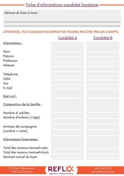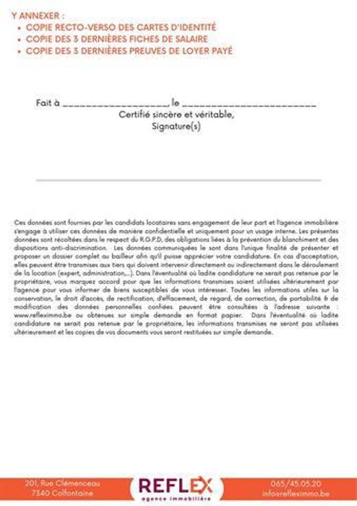 Candidature: https://www.refleximmo.be/perso/Formulaire_candidature_location.pdf