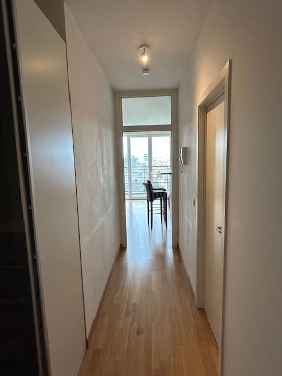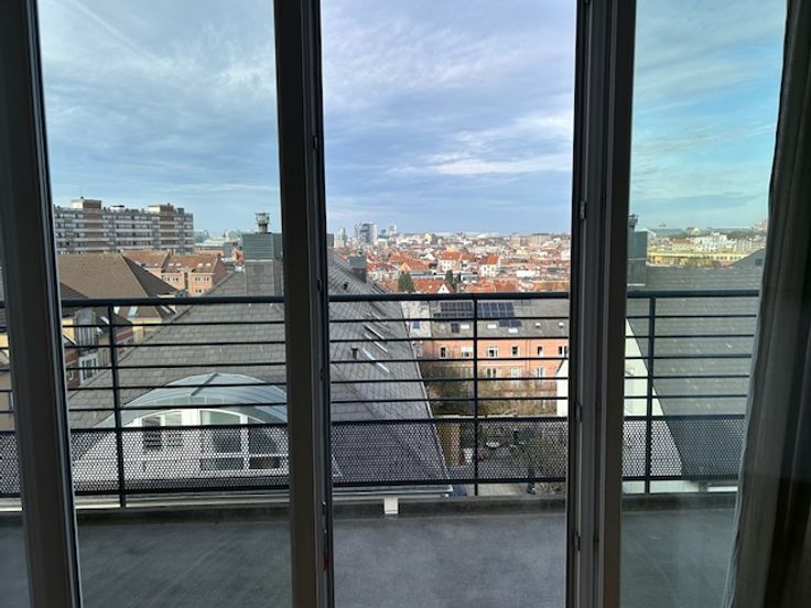 Zeer mooie en heldere studio van 46 m² op de 7e en voorlaatste verdieping van een gebouw van 2010. Het west gerichte teras van 10 m² biedt een prachtig zicht over Brussel. De flat heeft parket in de woonruimte, een volledig ingerichte open keuken , een ruime inkomsthal met dressing, een badkamer, een appart toilet en een kelder. Individuele verwarming (gas) en lage gemeenschappelijke kosten. De flat is zeer centraal gelegen in een rustige straat dichtbij het openbaar vervoer.