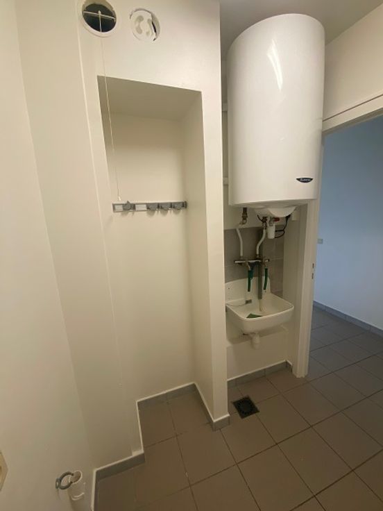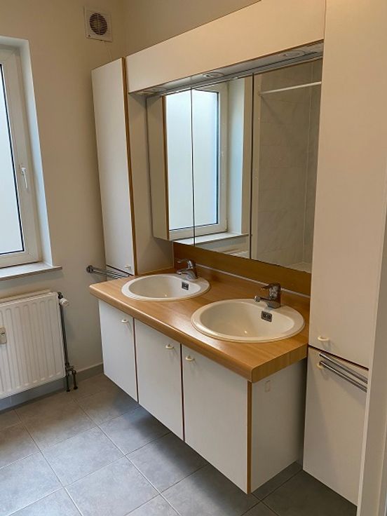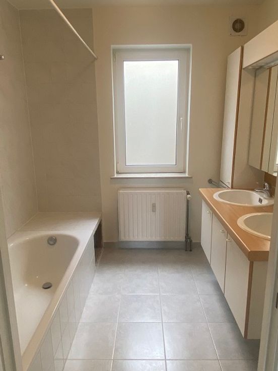 De twee slaapkamers zijn ruim en licht. De badkamer heeft een dubbele lavabo en een bad met douchestang. Er is een berging met een uitgietbak en een ingemaakte kast in de inkom.