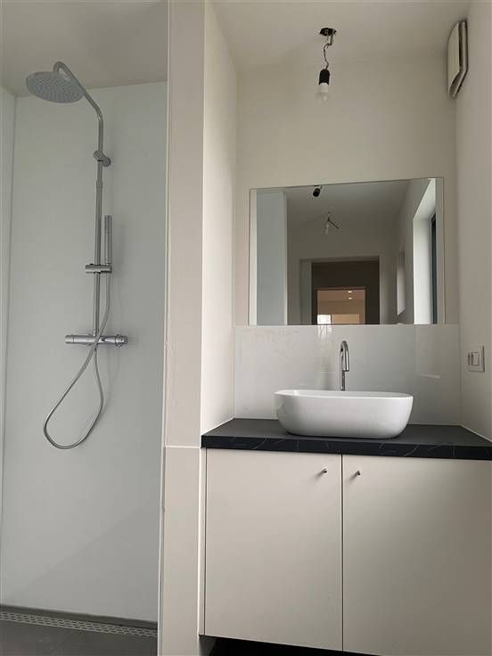 Bent u geïnteresseerd in deze stijlvolle, strak afgewerkte woonst? Maak uw afspraak met Anais via anais@vastgoed-dc.be of de website.