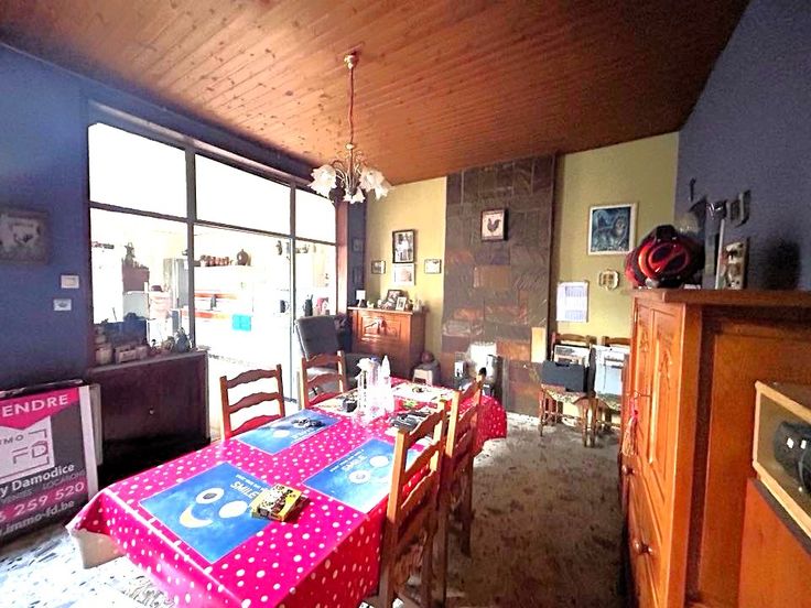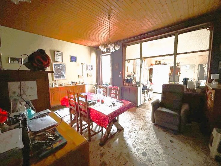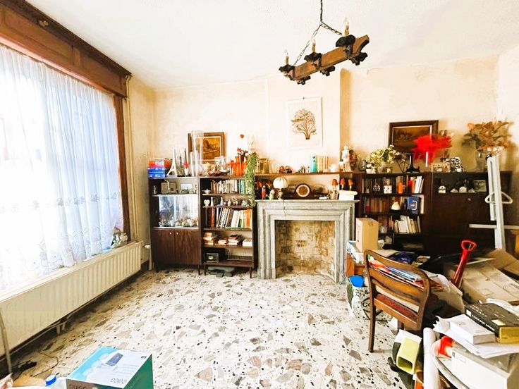 Jolie maison en bon état général sise sur un terrain de 1,70 ares avec 5 chambres + passage latéral + entrepôt à l’arrière de +/- 40M2 à rénover + jardin. Idéal pour un indépendant avec son entrepôt. Cette maison vous séduira d’abord par sa situation (proche de toutes commodités), ensuite une fois à l’intérieur, vous serez surpris par son bel espace habitable et ses beaux matériaux de style maison de maître (Haut plafond, cheminée, carrelage, portes,..), mais vous serez aussi séduits par ses bons équipements (Châssis, chaudière à condensation,..). En voici la composition: SS: 2 caves + citerne à eau de pluie. Au RDC: Hall, bureau ou salon en façade avant +/- 17M2, Pièce de séjour +/- 20M2 ouverte sur la cuisine +/- 18M2, 1WC séparé, 1 salle de douche avec espace buanderie. Au 1er étage : Hall, 3 chambres ( +/- 17M2,+/- 15M2, +/- 8M2). Au 2ème étage : Hall, 1 pièce +/- 17M2, 1 autre pièce +/- 13M2. Equipements : Châssis Bois & Pvc DV, Volets. CC Gaz (Chaudière Dietrich à condensation avec sonde extérieure), Toiture isolée (5cm de laine de roche), Citerne à eau de pluie avec GH, PEB classé D N°20250225006215 – Cons d’énergie primaire : 322 KWH/M2/AN, Electricité à remettre aux normes, Maison bien entretenue par les propriétaires. RC: 535 €. Surface terrain: 170 M2. Surface habitable: 200M2 (surface PEB). Prix : Faire offre à partir de 149 000 € (sous réserve d’acceptation des propriétaires. A voir sans tarder. Gsm: 0486/259520.