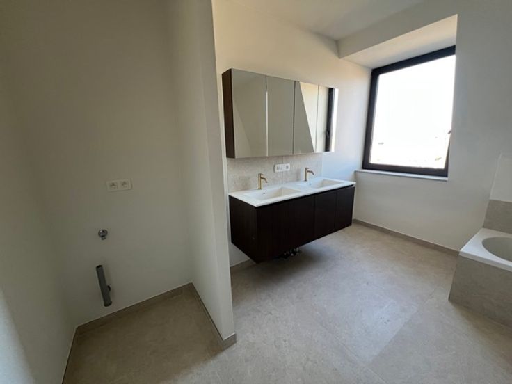 Indeling: inkomhal; apart toilet met lavabo; badkamer bevat dubbele lavabo, aansluiting voor WM/DK, toilet, inloopdouche en bad; 2 ruime slaapkamers; berging voor stockage; open leefruimte met grote raampartij, welke toegang biedt naar het zonnig terras met beschermd groenzicht; geïnstalleerde keuken.