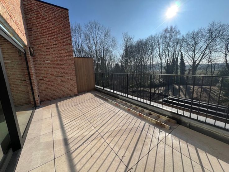 Luxueus nieuwbouw dakappartement met 2 slaapkamers, ruim terras met beschermd groenzicht en garage.