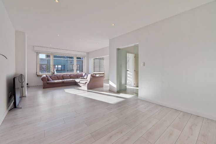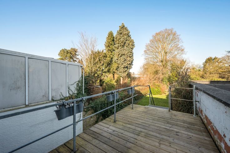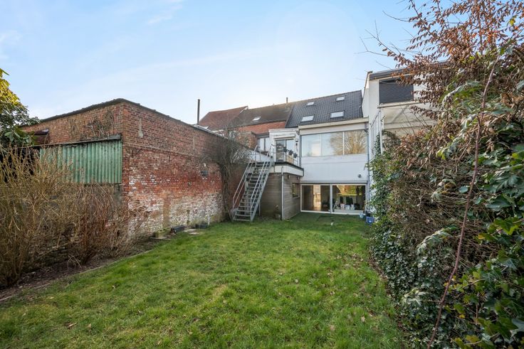 1eV: Via de hal met ingemaakte kasten neem je de trap naar boven. Hier vind je de huidige woonkamer (32m²), keuken (7m²), en een ruime slaapkamer (18m²) met uitzicht op de tuin. Hier bevindt zich eveneens een apart toilet. De derde verdieping is recent gerenoveerd en biedt twee slaapkamers (23-14m²), waarvan één met een charmante mezzanine (18m²).