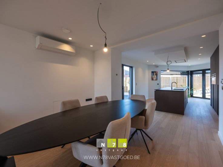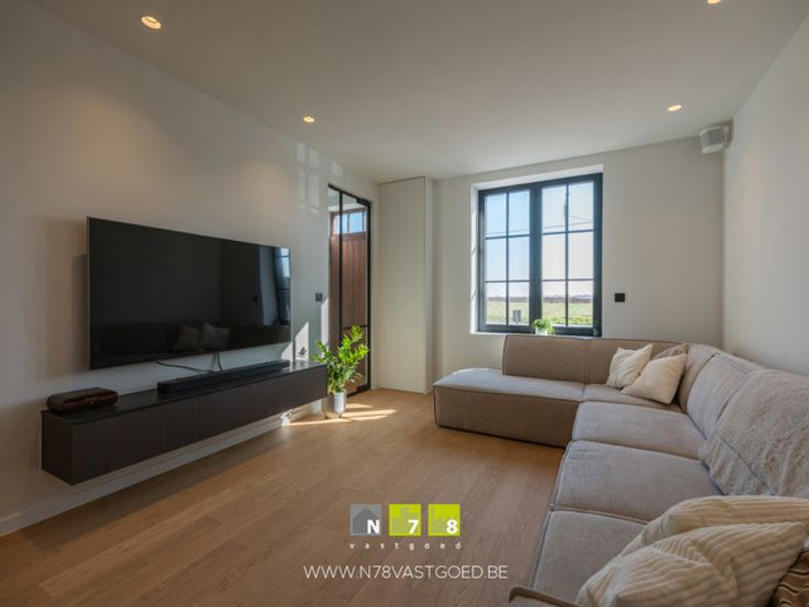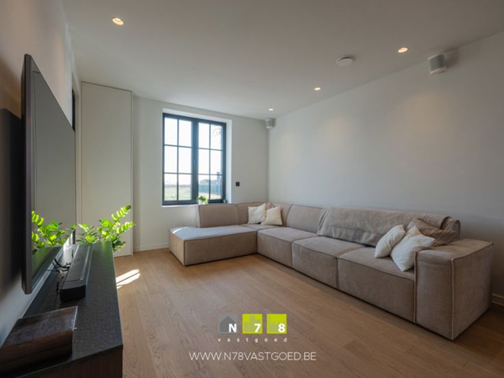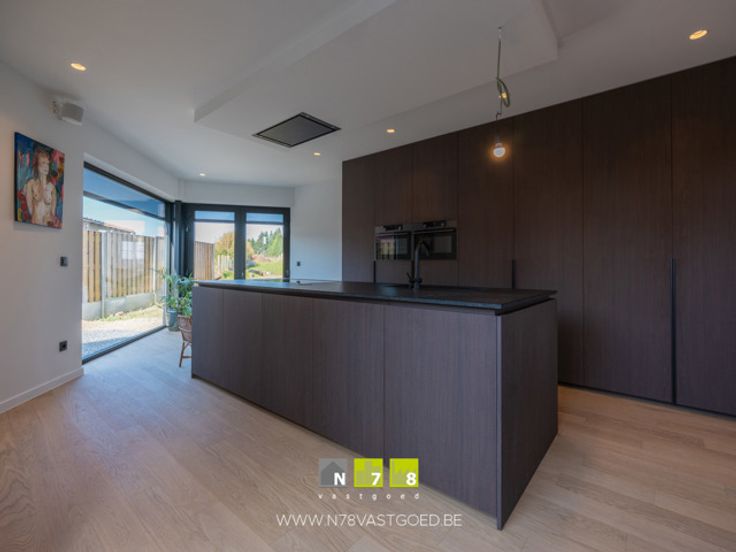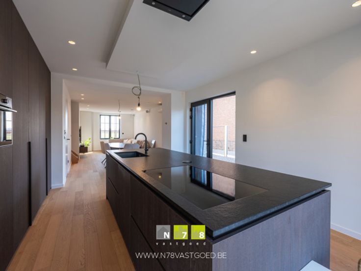 - Keuken (7,84m x 3,90m = 30,58m²): onder- en bovenkasten, lades, kolomkast, inductiekookplaat, dampkap, oven, microgolfoven, koelkast, diepvries, vaatwasser, granieten werkblad, masterwood oak keukenfronten, ingebouwde screens met elektrische bediening, parketvloer.