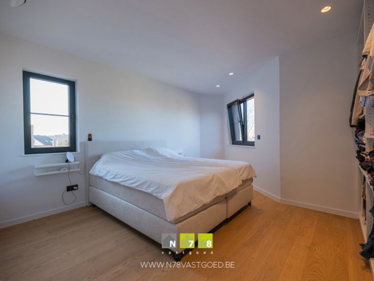 - Slaapkamer 2 (3,89m x 4,36m = 16,96m²): airco, parketvloer.