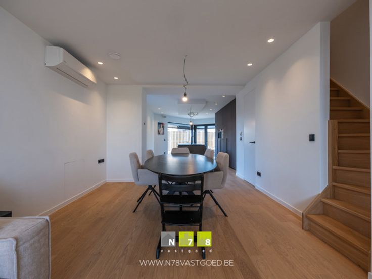 - Woonkamer (3,72m x 3,90m = 14,51m²): airco, voorziening geluidsinstallatie, parketvloer.