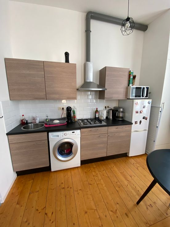 Mogelijkheid tot overname van alle meubels die te zien zijn op de foto (zithoek, tafel, stoelen, bed, kasten, wasmachine, koffiezetapparaat, oven, koelkast). Huidige huurder moet door omstandigheden verhuizen naar het buitenland.