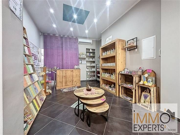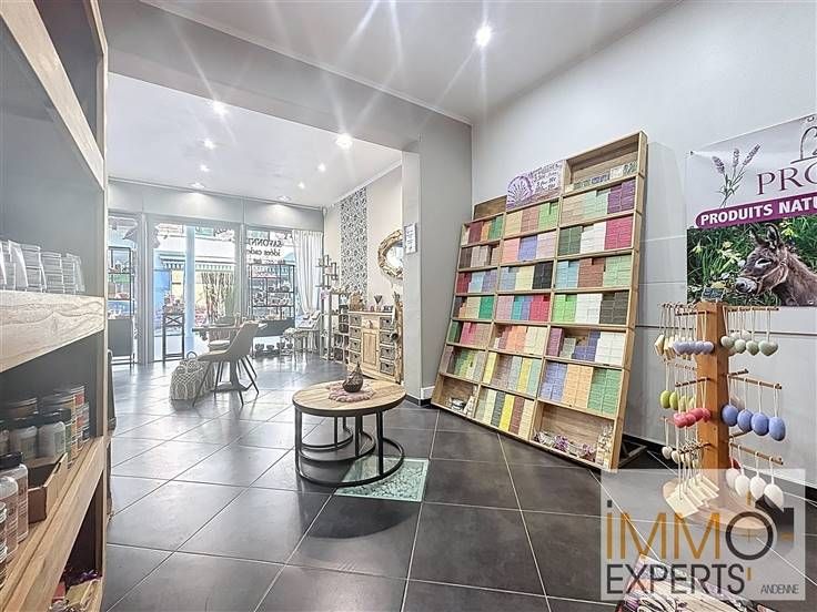 Atouts : grande vitrine (+/- 5 m), châssis en aluminium, volets électriques sécurisés, système de chauffage/climatisation, possibilité système d'alarme , espace cuisine meublé, WC et grande cave.