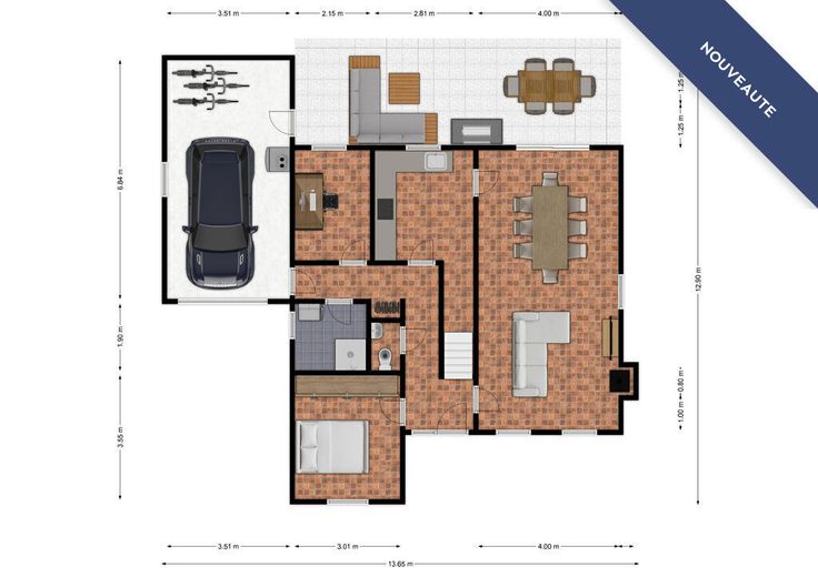 Au Rez-de-Chaussée : Un hall, un salon/salle à manger avec porte-fenêtre vers la terrasse, une cuisine équipée, une salle de douche (douche, évier), un WC séparé, une chambre, une deuxième chambre ou bureau ou cellier, ou autre, et un garage avec porte donnant sur la terrasse.