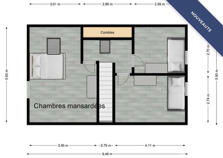 Au 1er étage : Un hall de nuit et 3 chambres mansardées en cours de finition (couche de peinture)