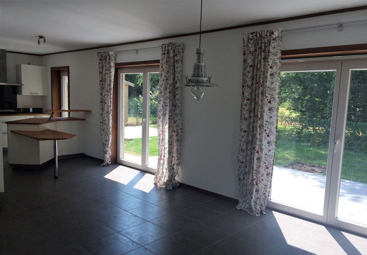 Pump system- double glazing. 2 water rooms and 2 separate toilets. 2 full storeys (no sloping ceilings) Light fittings, blind. Low energy: solar panels that cover nearly all your needs - rain water tank with a good well-s and curtains throughout.