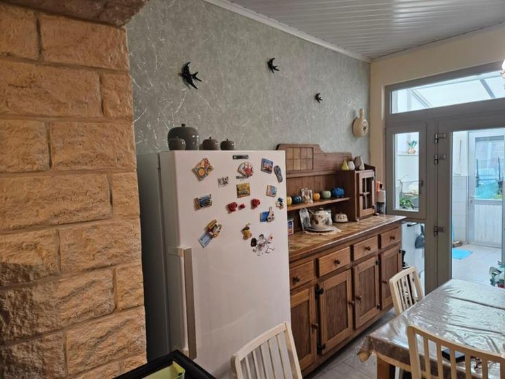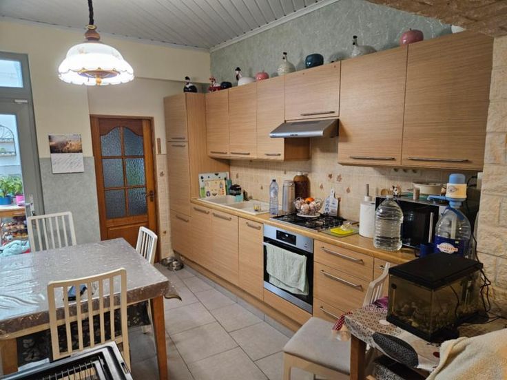 maison d'habitation proche de toutes commodités et dans un quartier calme avec garage non attenant (rue de la Légende Dorée 19+ - RC 79 €) composée au rez-de-chaussée d'une salle à manger, un living, une cuisine, une salle de bains à l'étage de deux chambres - grenier aménageable, cave, annexe, alarme, cour, volets à l'avant et à l'arrière, poele à gaz et poele à charbon)