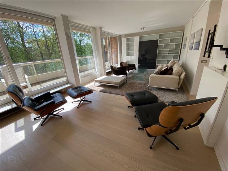 Gelegen in een groene omgeving in een rustige residentie met conciërge, biedt NADIMMO je dit prachtige luxe appartement van +/- 129m² op de 4e verdieping met lift. Het bestaat uit een grote inkomhal met apart toilet, een grote en lichte woonkamer van +/-35m² met een groot terras aan de achterzijde van 15m², een eetkamer van 10m², een nachthal met vestiaire, een grote slaapkamer van 12,50m², een kleine slaapkamer van +/-10m², een badkamer, een douchekamer, een apart toilet, een grote, volledig uitgeruste keuken (vaatwasser, oven, koelkast/vriezer, tal van kasten, ontbijthoek, ...), een wasruimte, een interne parkeerplaats. Vrij. Voorlopige lasten van €250 (gemeenschappelijke, verwarming, warm en koud water). Minimum huurperiode 1 jaar. Informatie en bezoek op afspraak op 02/280.03.03.
