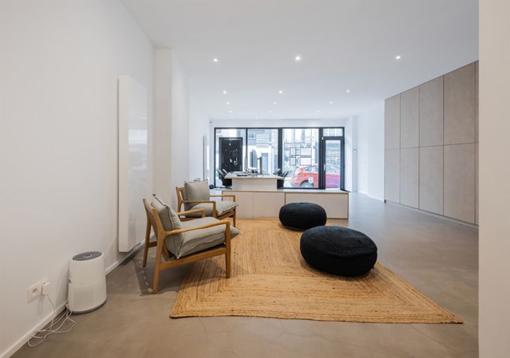 Op het gelijkvloers wacht een commerciële ruimte van ongeveer 50 m² op u. De ruimte is open en licht, klaar om uw activiteit in de beste omstandigheden te ontvangen. Ingebouwde kasten en bureaus met lage opbergmeubels zorgen voor een functionele indeling. Voor uw gemoedsrust is het gebouw uitgerust met dubbele beglazing en een alarmsysteem. Een moderne, volledig nieuwe en functionele keuken vervolledigt het geheel.