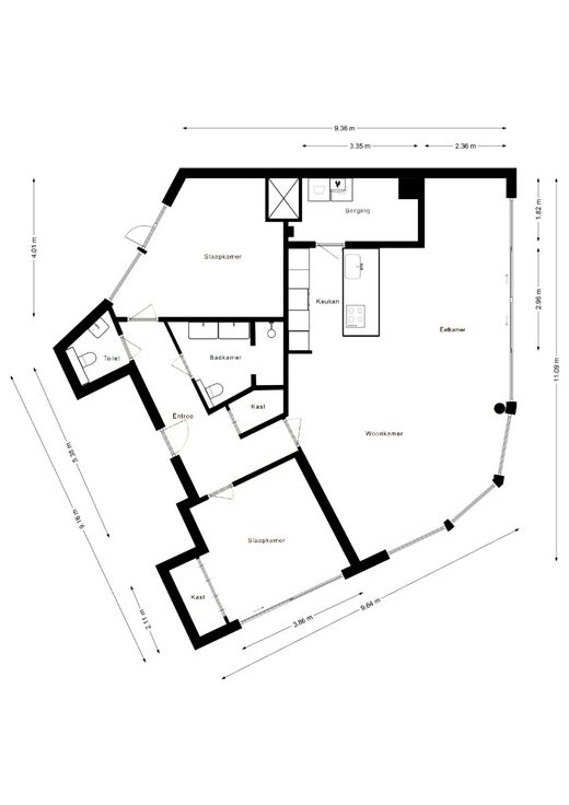 apart toilet, berging en 2 volwaardige slaapkamers met ingebouwde kasten.