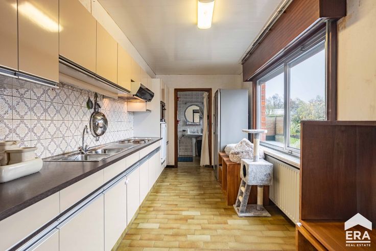 [[ DIT PAND NEEMT DEEL AAN DE ERA OPEN HUIZEN DAG OP 15/3 VAN 9:30 TOT 10:30 ]] Ben jij op zoek naar een licht op te frissen woning met 3 slaapkamers, autostaanplaatsen en tuin met groen verzicht te Moorsel? Gevonden! Deze halfopen bebouwing is landelijk gelegen met zicht op de groene omgeving van Moorsel. Naast het perceel van bijna 8 are met oostelijke oriëntatie en nieuwe afsluiting, beschikt deze woning over vernieuwde elektriciteit, hoogrendementsbeglazing én een geisoleerde zolder met vaste trap & nieuwe velux. Vergeet ook het nieuw aangelegd terras, de rolluiken, de grote oprit en de uitbreidingsmogelijkheden op het gelijkvloers niet! Indeling: Deinkomhal verleent toegang tot de ruime leefruimte (34m²) met zit en eetplaats. Aansluitend aan de leefruimte vinden we de keuken en de badkamer. Dankzij de aangrenzende berging (29m²) met een vernieuwd geïsolleerd plat dak, kan de badkamer uitgebreid worden en schuilt er nog een enorm potentieel aan mogelijkheden. Via de nachthal bereiken we de eerste verdieping met 2 slaapkamers (18m² en 19m²). De zolder (35m²) kan je bereiken via een vaste trap. Hier kan nog een extra master bedroom gecreëerd worden. Verder beschikt de woning over een praktische oprit met ruimschoots plaats voor meerdere autostaanplaatsen en een regenwaterput van 7.500 liter. Interesse? Aarzel niet om ons te contacteren om een afspraak in te plannen.